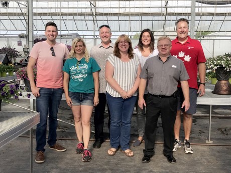New Blooms Hosts, left to right: Chris Berg (Westhoff & PAC), Debbie Foisy (Deb’s Greenhouse), Robert Bett (PlantHaven International), Judy Born (Florist Holland), Amy Gard’ner (Floranova & Vegetalis), Dominik Neisser (Vivero Internacional), Michiel Verheul (High Q Greenhouses)