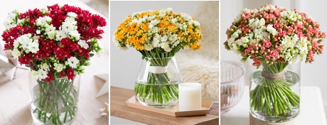 The Queen cut flower kalanchoes are a new introduction of Knud Jepsen, a Danish breeder of kalanchoes. The Queen branded cut flowers are known for their large flowers with strong bright colours and guaranteed vase life of at least three weeks. Moreover, the variety is ethylene resistant, which extends the shelf life in the supermarkets.