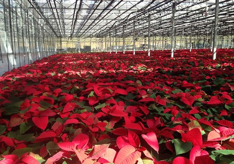 Hionis Greenhouses is one of New Jersey's largest growers of potted plants, holiday and seasonal plants, and cultivates poinsettias for the winter holidays in an 8 acre greenhouse. The plants are finished and currently being shipped out. "After Thanksgiving, people are eager to decorate their homes for the holidays. The sales are strong for the start of the season and the mild weather might help", he says. About 70 percent of the crop is shipped out of the greenhouse, and in another week, Hionis expects to be through the entire crop.