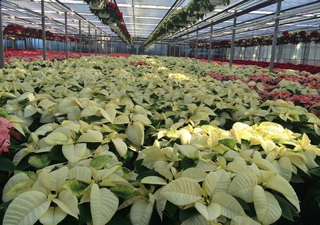 Next to the traditional red poinsettias, Hionis also grows white, pink and novelty colors, like multicolored, ice punch and ruffle leaved poinsettias. "People like to try out the new and different poinsettias, but the red varieties are still by far the most demanded varieties. About 80 percent of the poinsettias we grow are the red ones."