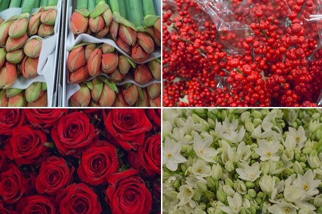 According to Levi, everywhere you look on the market, you see the colors red, green and white and not to forget, the pots and trays that are covered with tons of glitters. But next to the traditional Christmas items, like cyclamen, poinsettias, greens, roses and tulips, more is offered on the market.