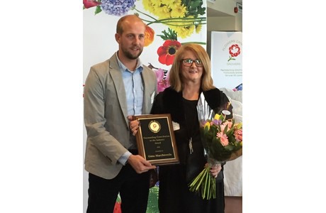 And Gina Marciada received this award this year. Gina Marchionda was first elected to the Flowers Canada (Ontario) Board of Directors in 2007 at a time when the association needed someone with financial accounting skills to take on the role of treasurer and has been re-elected to that post in each succeeding election since then. FCO has benefited greatly from Gina’s enthusiastic personality and financial skills. But her passion and understanding for small, family run business, has been an even greater asset to the successes of the past 10 years at FCO. In addition, Gina also began to help out in many committees for FCO and FCG. She continues to serve the sector and represent flower growers on the TOGA Human Resources Committee, the FARMS Board, the International Trade Committee, the Cost of Production project steering committee, and the Management Committee for GreenCHIP-Q.