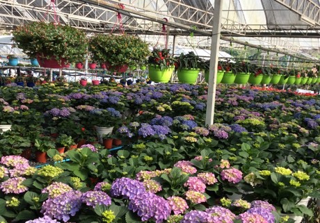The finished Hydrangea plants are grown from pre-finished pots. "We import these pre-finished pots from Germany."