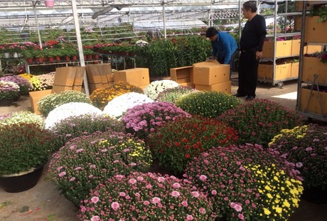 The Multiflora Chrysanthemums are the finished plants grown from the unrooted cuttings from Brandkamp.