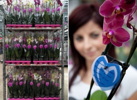 On the right, the Maarel Orchids-label. left a cart with pink labels.
