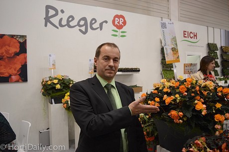 The assortment of Rieger Begonien consist of 40 to 50 in- and outdoor begonia varieties that are being grown in a 10.000 m2 sized greenhouse (6500 m2 double glazed and 3500 m2 single glazed) in Germany. The greenhouse is equipped with all necessary modern technologies. "Constantly, we try to come up with new and enhanced varieties that can be placed indoors and outdoors. In 2012, one of our begonia varieties was awarded as begonia of the year; the „Klunker-Heidi“. Lately, we introduced a new scented line. The begonias in this line are only suitable to be placed outside", says Rohde.