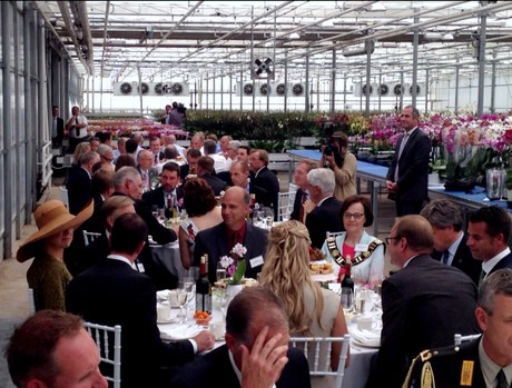 The Royal Couple received a 20 min tour from the owners of CosMic Plants, Mike and Neil Van Steekelenburg. They hosted a high tea afterwards.