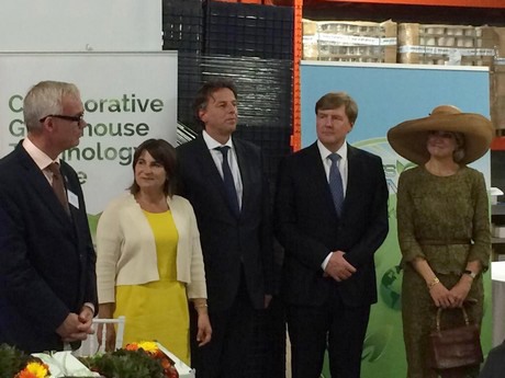 Research center of Vineland Research. From left to right: Dr. Jim Brandle, CEO, Vineland Research and Innovation Centre; Lilianne Ploumen, Netherlands’ Minister of Foreign Trade and Development Cooperation; Bert Koenders, Netherland’s Minister of Foreign Affairs; King Willem - Alexander and Queen Máxima, the Dutch