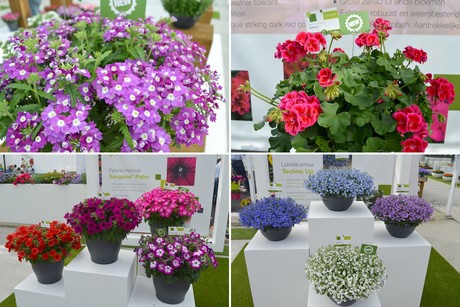 Some of the introductions of Sungenta this year: Upper left: Verbena Lania Up, upper right: Calliope Red Splash. Bottom left: Sanguna Patio, bottom right: Techno Up.