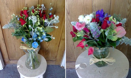 On the left: Hand-tied from £15. On the right: Jam Jar posy from £7.