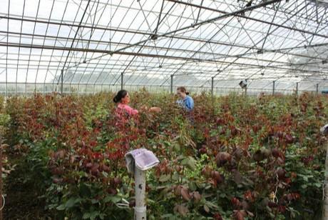 Sussex Roses grows different flower crops in a one acre-sized greenhouse and on one acre of open land. "In the greenhouse, we grow over 10,000 rose bushes, rows of cordon sweet peas, hybrid delphiniums, dahlias including Karma varieties, antirrhinums, sunflowers, chrysanthemums and a varied selection of seasonal bedding plants. Outside, we grow viburum opulus (guelder rose), astilbe and griselinia. This latter variety will be maturing in the coming years.