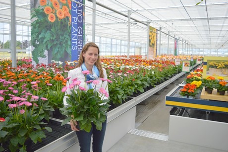 Martine van Went of Florist Breeding shows one of their new gerberas.