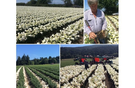 “A few weeks ago all the flowers were removed from the plants, to stimulate growth of the bulbs. The bigger bulbs will be shipped to greenhouses in the fall to begin growing them for flower production. Right now the Easter Lily grower is also checking the bulbs for healthy roots.”