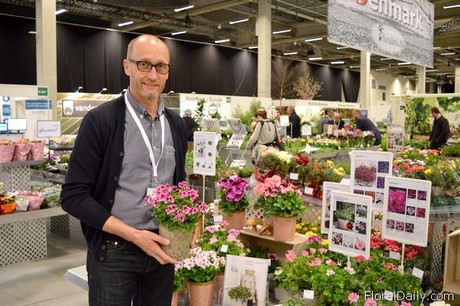 Per Christensen at the Nordic Flower Expo in Malmö in Sweden. He is holding one of the Pelargonium varieties in the Green interior concept called the Sweet Pink.