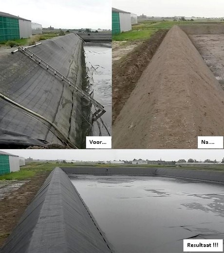 "A nice project for a nice company," the men of GWW Van Daalen summed up the renovation of the water reservoir at Royal van Zanten. Between 7 and 15 October they completely renovated the existing basin. This means draining, cleaning, removing the cover and foil, the dykes are re-secured, piping system adapted and new foil and cover are lined. Which resulted in a week's hard work at Rijsenhout, the Netherlands.