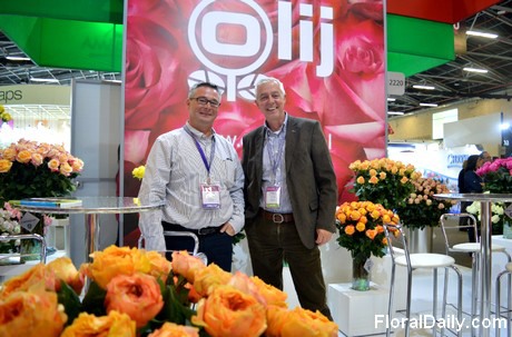 Philippe Veys of Olij Breeding and Ronald van den Breevaart of Green Team Consultancy. According to Veys, the grassheart roses (roses with a green heart) of Olij Breeding are new for the Colombian, and also for the US market and is increasing in popularity. "They have to get familiar with it, but we see an increase in demand, every year," says Veys.