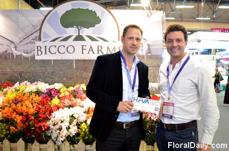 Mark Fikkers of Havatec, a manufacturer of flower buncher machines, and Daniel Hoyos of Bicco Farms, a Colombian grower of Alstroemeria, Statice, Solidago, Limonium Blue. In February 2016, Havatec will install their new quality buncher 2.0. This flower buncher is especially developed for the Colombian market. "It saves 50% on labour," says Fikkers.