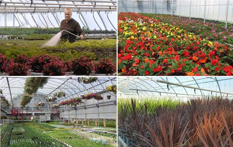 High Q Greenhouse. Upper left picture: Michiel Verheul, owner at High Q Greenhouses, is watering the plants.