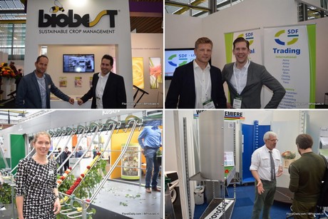 Clockwise from top left: Bart Joosten and John van Eijk of Biobest; Pieter Zwinkels and Raymond van den Berg of SDF; Pierre de Measmaker of FotoCCar; and Lianca de Ruiter of Bercomex