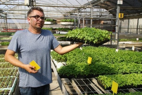 Vitali Dubrov from Hishtil showing us their export trays for the hobby market.