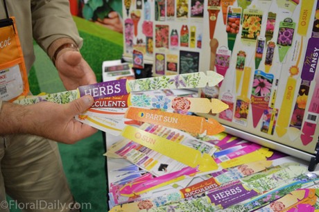According to Howden, the trick is the tip of the handle. "The tips have so-called dog ears, which spread out after inserting and twisting them into the tray. The polypropylene material is very strong but very flexible at the same time. We’ve designed a specific size tip with dimensions and cuts in specific ways. This enables it to have a very secure connection with the pack product", says Howden. Next to their standard range of 6 pre-printed handles, that fit the majority of the packs, they also offer the opportunity to design a handle that specifically meets the growers needs. "Pre-printed handles include Wave, Cool Wave, Herbs, Succulents, Groundcover and Sun / Part-Sun / Shade designs. Macore frequently creates custom handles combining their design team with clients' direction for a rich, beautiful look."
