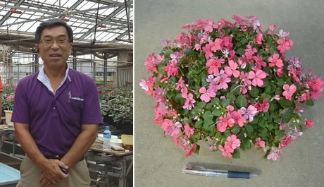 On the left: Shiochi Oshio. On the right: Mini Impatiens grown by Oshio.