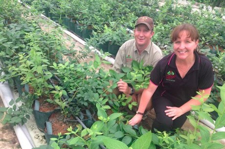 Wade and Nicky between their hydroponic berry crop