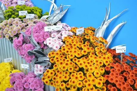 Next to the Madras Red (on the right) and the Madras (second on the right), Brandkamp added two new varieties in this cut chrysanthemum series; the Adana - a light pink variety with a bright green centre (third on the right)- and the multicolored Maskat - a green, pink, white variety with filled flower (upper left).