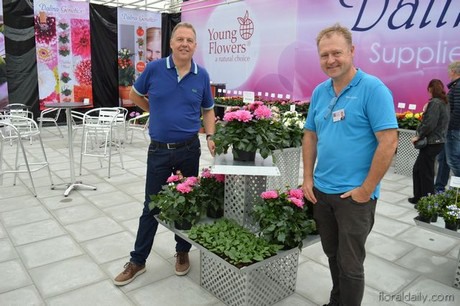 Michael Ellegaard of Young Flowers and Hans Henrik Kampmann of Dalina Genetics at the FlowerTrials 2016. They are standing next to the Dahlia Maxi “cv. Mendoza”. Young Flowers and Dalina Genetics are cooperating for 19 years now. Dalina is specialized in plant breeding of gentianas, dahlias, and osteospermum and is also active in pot vegetables. Young Flowers is responsible for the sales of the rooted and unrooted cuttings and seeds.