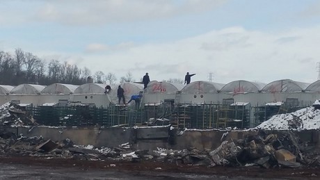 Two days after the fire, they started to remove the scrap metal and on January 6, Dan Schantz posted the pictures below. In this post, they also mentioned that their production was packing orders for the deliveries for the next day and that the planting lines are sticking over 200,000 young plants for the Mothers Day flower's. Despite all that damage at the 83-acre Dan Schantz Farm & Greenhouses, it is not affecting the Easter flower season, the owners told the The Morning Call.