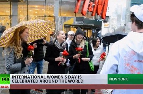 Also in other parts of the world, Women's Day is being celebrated or awareness is being raised for this holiday. In New York, for example, Russian men were handing out roses to passing women on March 7. They say they wanted to share the importance of the day, that is not widely being celebrated in the US.