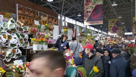 So, a bouquet is more expensive. And the Russians really set a budget aside for this festivity. "You should realize that a man does not only give a flower to his wife or girlfriend, but to every women he knows. The difference in what you give lies in the size of the bouquet, the stronger the relation, the bigger the bouquet."