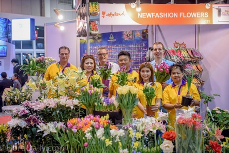 The joint booth of New Fashion Flowers, Van den Bos Flowerbulbs and Van der Laan Tulips at the 2017 Horti Asia in Bangkok last month.