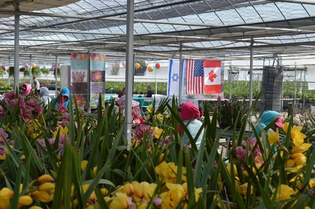 Work most go on. The employees of Chisan Orchid Nursery are packing the orchids.