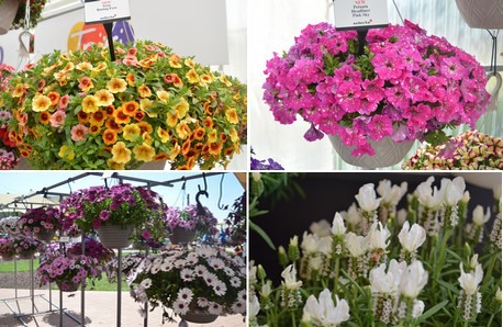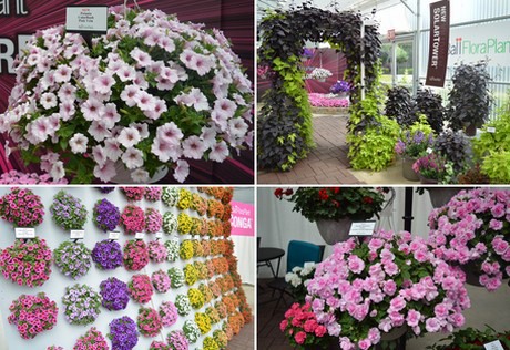 Clockwise: ColorRush Pink Vein petunia matches the ColorRush Pink habit and vigor, but has a more intense light pink coloration. The new SolarTower series Ipomoea consists of two varieties; Black and Lime. It is said to be the first ever self climbing ipomoea. Fiesta Lavender Orchid Improved Double Impatiens has large and fully roselike blooms. It is fast, easy and economical to grow in bench-run programs. Nine new and improved varieties are added to the Conga Series Calibrachoa. The plants in this series have an uniform growth habit and no PGRs are needed.