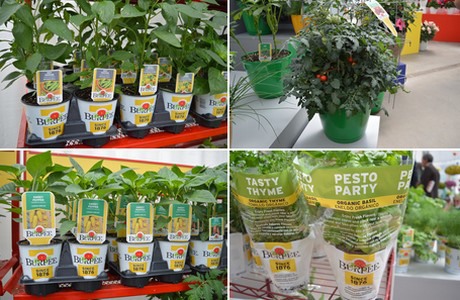 Dragon Roll Hybrid Hot Pepper is a shishito pepper and produces 3-5 inch peppers and carry a mild heat when young and add up Scovilles as they mature. The Take 2 Combo Camera is part of the Take 2 Combo series is known for the fact that two tomatoes plants are grown in one pot, in this case a large and small tomato variety. Organic basil is a basil that can be grown indoors year round. It is being sold to the grocery stores and is a new segment for Burpee. Lemon Dream Sweet Pepper is a 18 inch ornamental plant that produces 3 inch yellow sweet peppers.