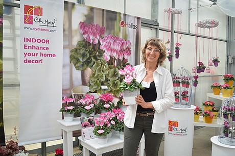 Florence Vaux of Morel Diffusion presenting the Halius Funflame Magenta. It is a sturdy and round plant. The seeds in the USA are distributed through Ball.