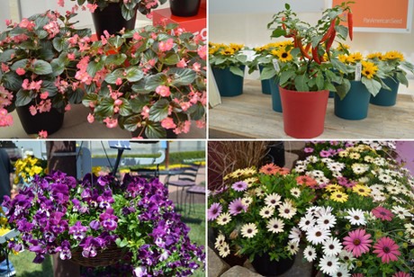 Clockwise: The Megawatt Red Bronze Leaf Begonia has sturdy stems that hold its flowers above the foliage. The Bronze Leaf varieties seem to be faster to flower than the Green Leaf varieties in long days. Capsicum Hot Fajita is a new edible ornamental pepper. Akila Grand Canyon Mixture Osteospermum is said to be the first multicolor segregating mixes. The plants in this series are grown from seeds. The seed in this series are said to match or even surpasses any vegetative series for easy, no-pinch production. The Cool Wave Raspberry Spreading pansy is a new color in the Cool Wave series. It is velvet rosy-purple with white around the flower center.