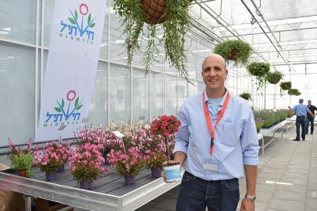 Eyal Klein of Hishtil presenting the Funtastick Calibrachoa Cherry Tree. It is a new high stem, grafted, ornamental Calibrachoa. This plant is created by grafting herbaceous ornamental Calibrachoa having a short height and bushy growth habit on a rootstock containing a high-single stem.