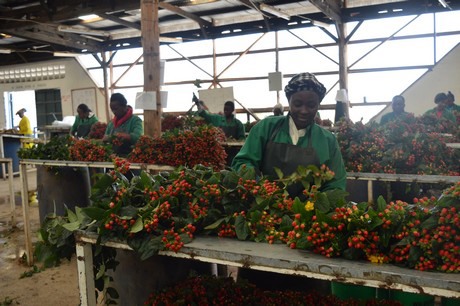 Next to roses, Wildfire Flowers grows hypericums too. On 15 ha, they mainly grow red and green hypericums. In this area, these flowers are, together with the roses, graded and packed.