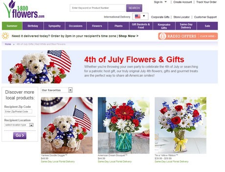 Independence day is a day that is widely celebrated in the US and flowers are taking an important part in this celebration. For this reason, many US online flower shops, like FTD, 1-800 Flowers, fromyouflowers.com and ProFlowers plenty of 4th of July flowers, bouquets and gifts are on offer.