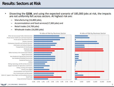 And they will also stress the larger impact of this minimum wage hike beyond the greenhouse industry. "The Ontario Chamber of Commerce, representing a large group of business sectors (accommodation, food processing, food retail, fast food, retail sales, service sectors, and so on), have just released an economic impact study that identifies a number of unintended consequences like less employment, higher inflation, greater youth unemployment, etc."