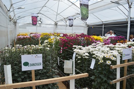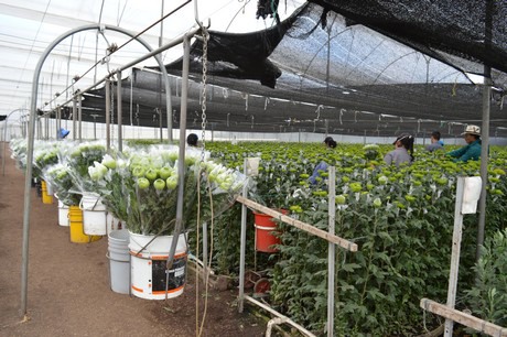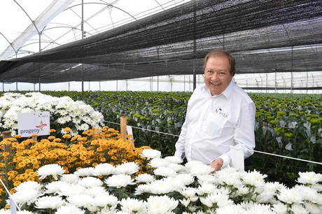 Roso Sterling, General Manager at the company, presenting the chrysanthemums that are being semi-commercially grown.