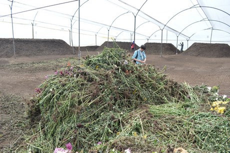 When preparing the beds for a new crop, they use their own compost. This compost is made from their own flower waste.