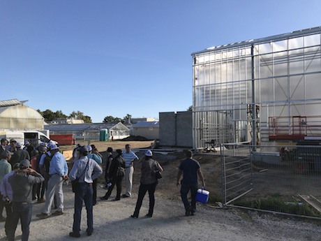 Harrow scientists toured the group around, kicking off by providing a glimpse of the all new seven meter tall diffused greenhouse structure that is currently under construction. The new research greenhouse, which will have diffused glass installed, is expected to be operational by the end of this year.
