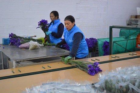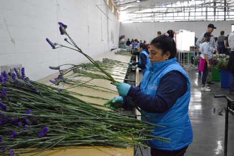 Using length lines on the conveyor belt, Flowers are graded depending on their quality characteristics (flowers that don't fit quality standards are taken out). Then, each stem is pre-cut to be bunched.