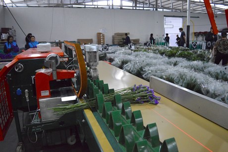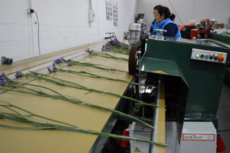 The Potveer machine cuts, sorts and bunches the statice. "As it is all done automatically, it is being done more accurate, which in turn results in a more consistent bunch of flowers", says Camilo Bazzani of La Plazoleta.