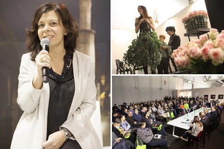 On the left: Valeria Randazzo, exhibition manager of the Myplant & Garden, upper right: flower decoration shows and bottom right: seminar.