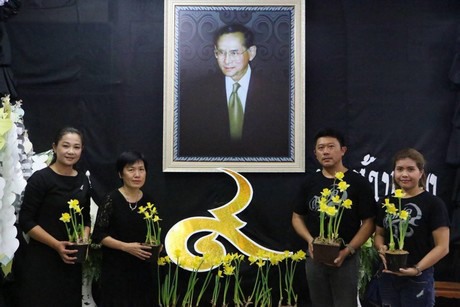 The team of New Fashion Flowers with the picture of King Bhumibol and daffodils.