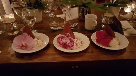 They welcomed guests from places like Windsor, Sarnia, Toronto, Guelph and Cambridge who all came out for a greenhouse tour, local wines and beers (from CosMic's neighbours; Malivoire Winery and Bench beer brewery). The appetizers and 4 course dinner was prepared by local Culinary Market The Grand Oak (from Vineland) and served on a 40 meter long harvest table, surrounded by Floral Décor designed and installed by Opening Night Flowers (from Oakville).